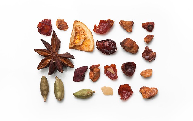 Σύνθεση αποξηραμένων φρούτων και μπαχαρικών, τα γήινα και nutty αρώματα της οποίας θα αρωματίσουν ξεχωριστά τις γιορτινές σας στιγμές. Γλυκό λικέρ με μελένιες νότες από μια κούπα σε ζωηρές κόκκινες αποχρώσεις. Το μήλο, το πορτοκάλι, το παντζάρι και ο ιβίσκος χαρίζουν το χρώμα και τα αρώματά τους, ενώ το αμύγδαλο, το κάρδαμο και το αστεροειδές άνισο γλυκαίνουν και δίνουν ένταση στο σύνολο